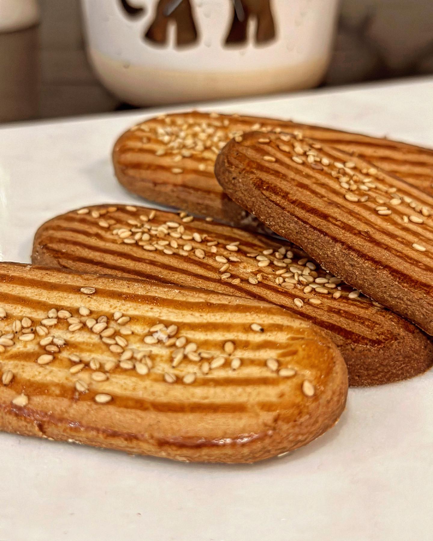 Light, crisp, and delicately sweet, our Pa Derazi Teatime Treats are the perfect companion to your afternoon tea or coffee. These golden-baked, tender Persian cookies are subtly flavored, beautifully striped, and topped with toasted sesame seeds for a satisfying crunch in every bite.